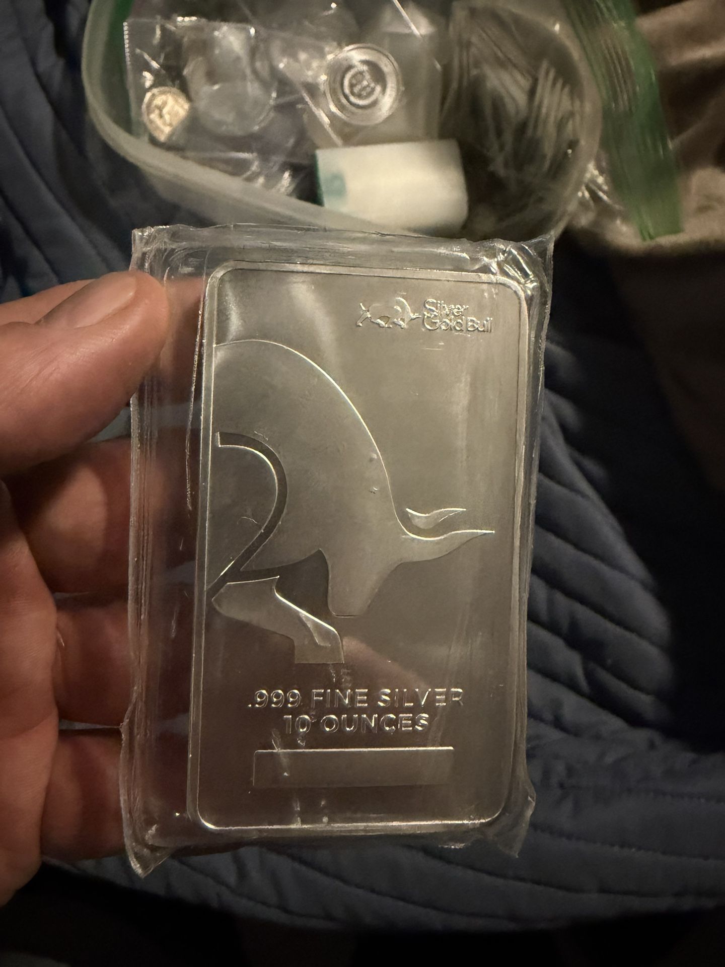 Silver Bar 10 Oz And Morgan Silver Dollar