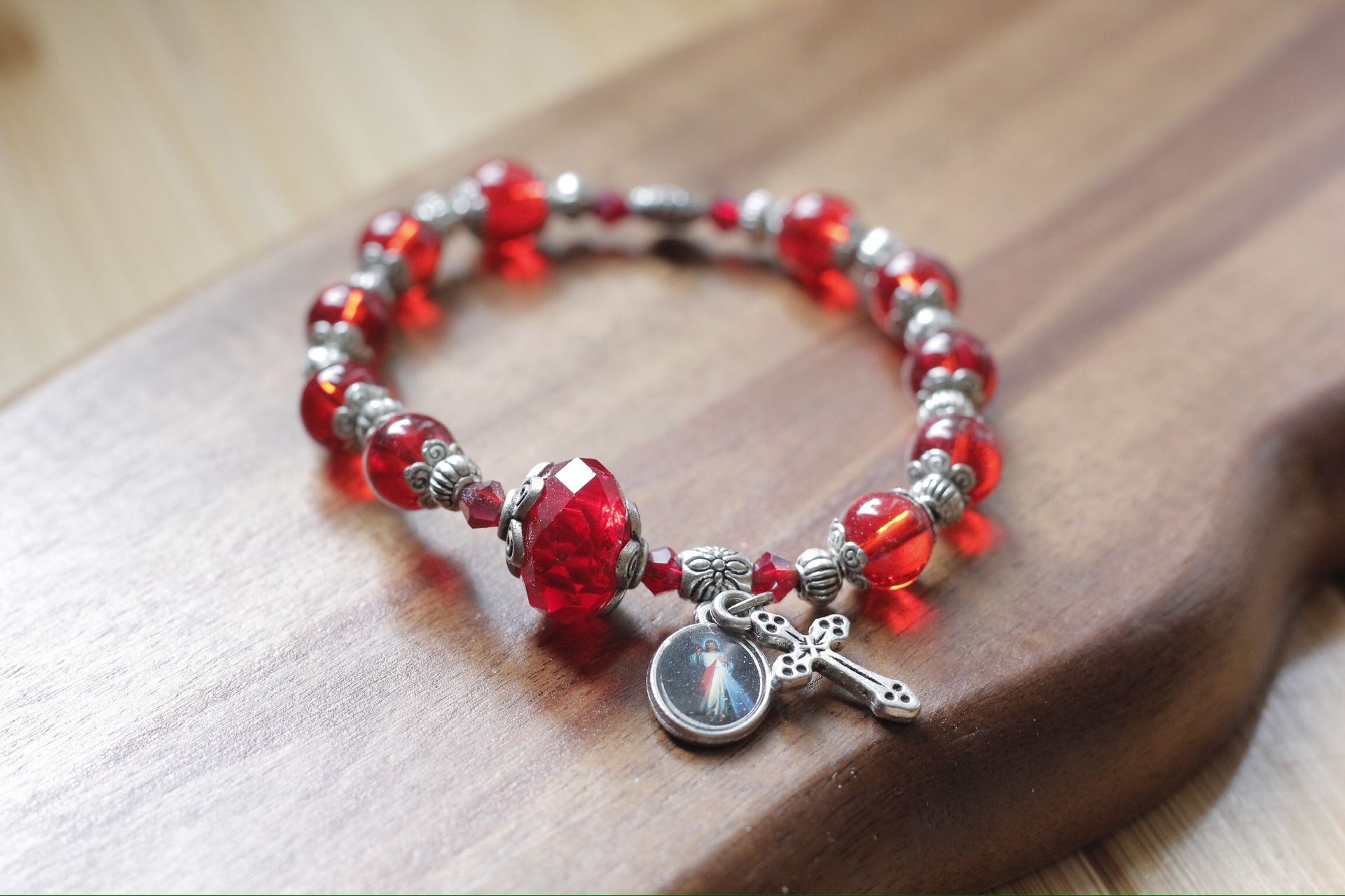 Rosary Bracelet, Crystal beads, Silver Plated beads, All sizes