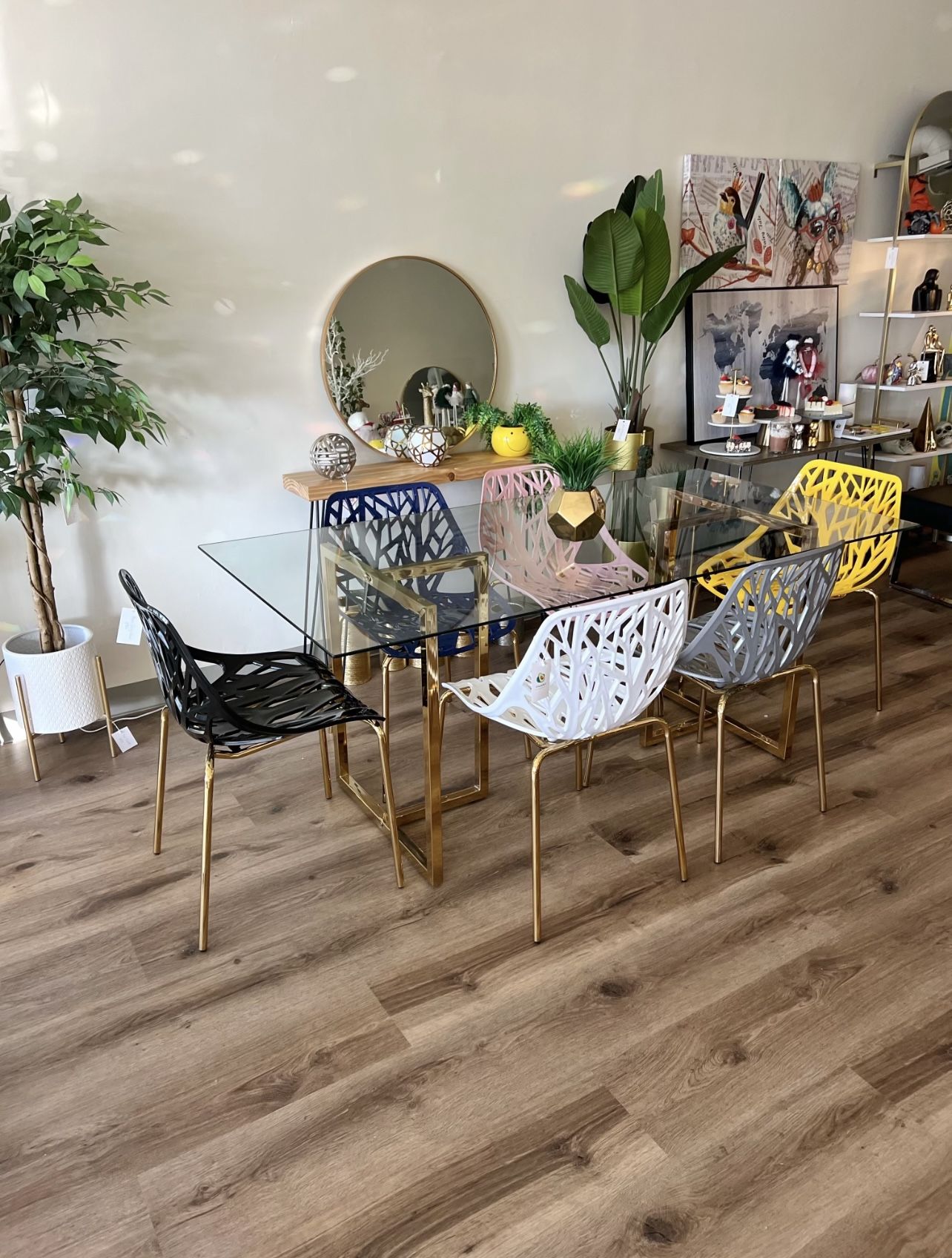 Brand NEW in the box Pick any color for the chairs - 71”x35” dining table - Tempered glass top - Gold chrome legs - 6 chairs - Perfect for big families - Sturdy rectangular kitchen table Pick up from Culver City or delivery for an extra fee