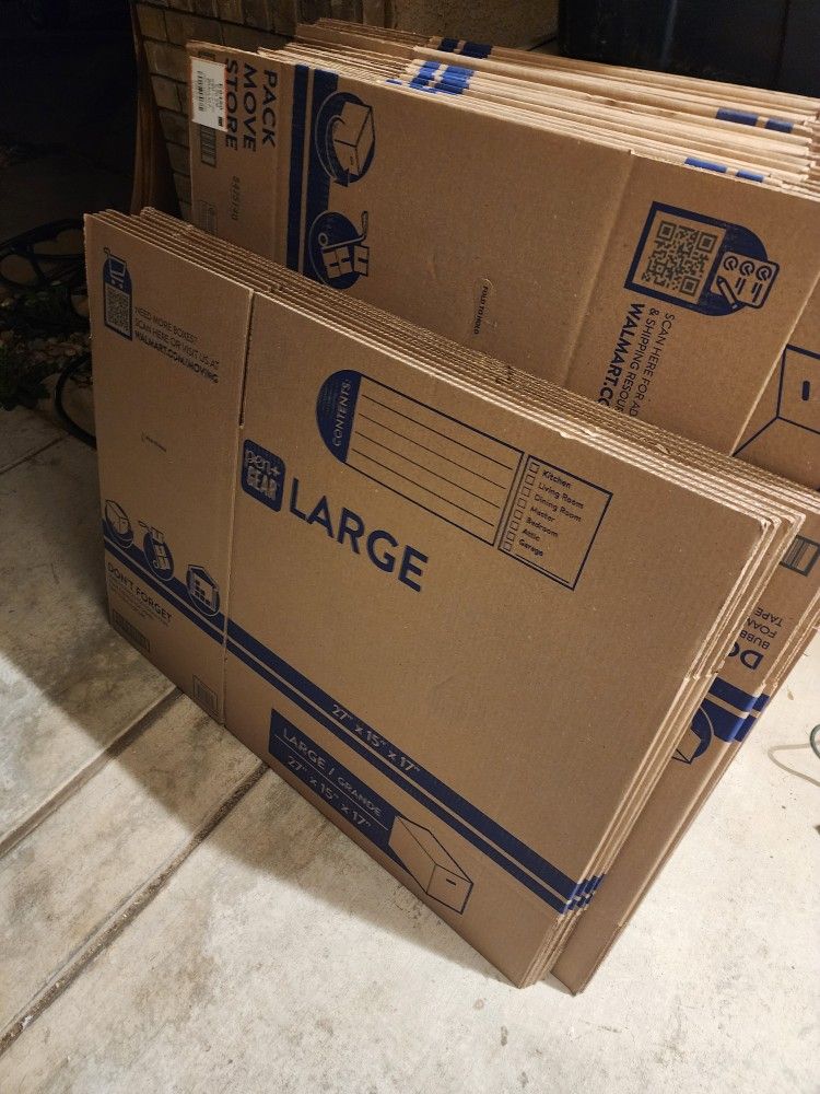Brand new large moving boxes 25×15×17. Assistance available. Ayuda disponible