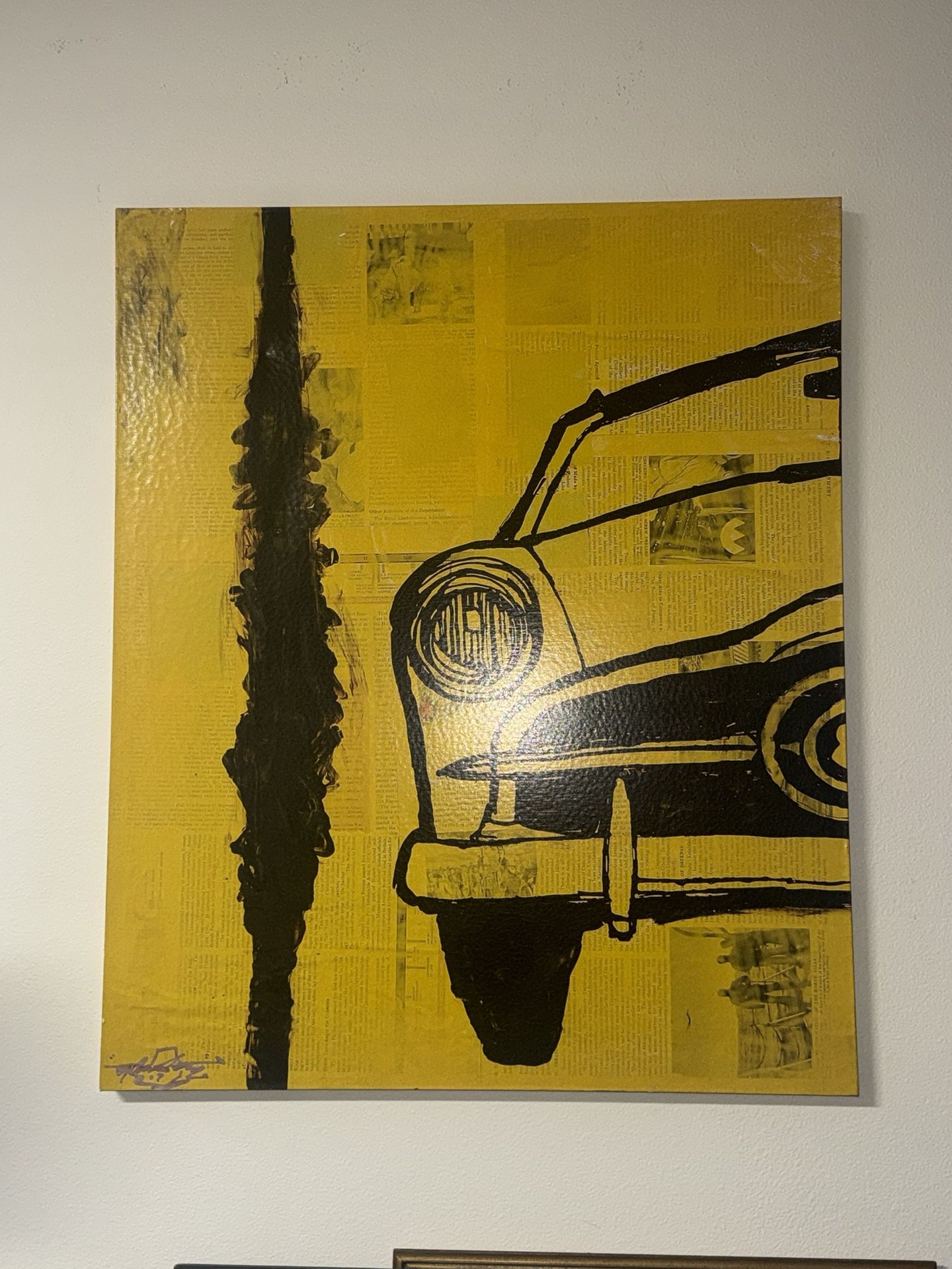 Authentic Aaron Kolden canvas titled “Ford 1949,” complete with Certificate of Authenticity from Leftbank Art. This is a First Edition Release Giclée on canvas — officially licensed and produced with high‑quality archival materials. 48x40 inches Aaron Kolden is a San Francisco–based artist known for blending realism with abstract elements, often incorporating vintage themes. This piece features bold graphic lines, a vibrant yellow background, and a striking aviation‑inspired composition that makes a powerful statement in any room.