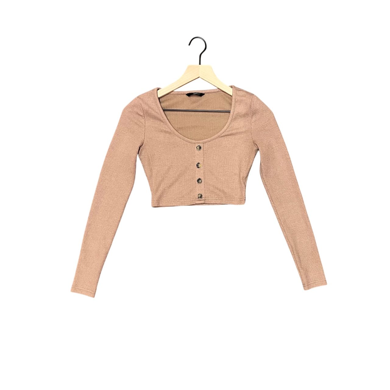 Soft and flattering SHEIN ribbed long sleeve crop top in a chic neutral tone, featuring button front detail for effortless everyday style. Perfectly versatile. All Equity Estate fashion is washed before shipping 🧼 100% satisfaction guarantee or your money back ✅ Visit Equity Estate @equityestate on all socials for more 🏡