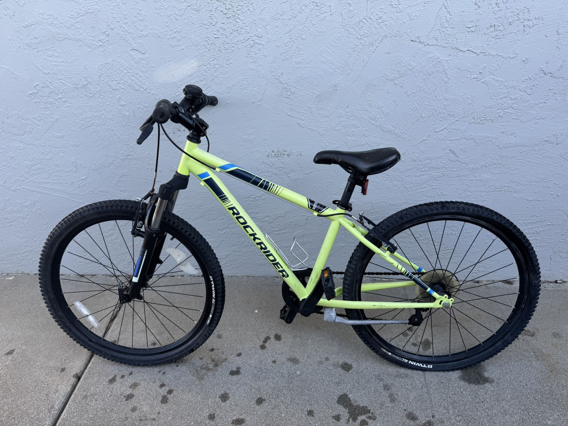 Rock rider ST500 24” Mountain Bike Rides good Brakes work well Has nice all terrain tires -needs rear inner tube