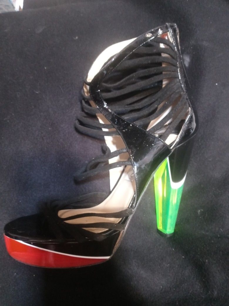 These heels are on the cover of Forbes magazine as one of the top 10 most influential Jimmy Choo pumps of all time. The heel and toe blink off and on as you walk in them. These are in great shape and as you can see brand new they are asking $1800.00 and used they are asking $800! size 9 1/2. Open to trades. Jimmy Choo High heels Pumps Stilettos Stripper shoes Club shoes