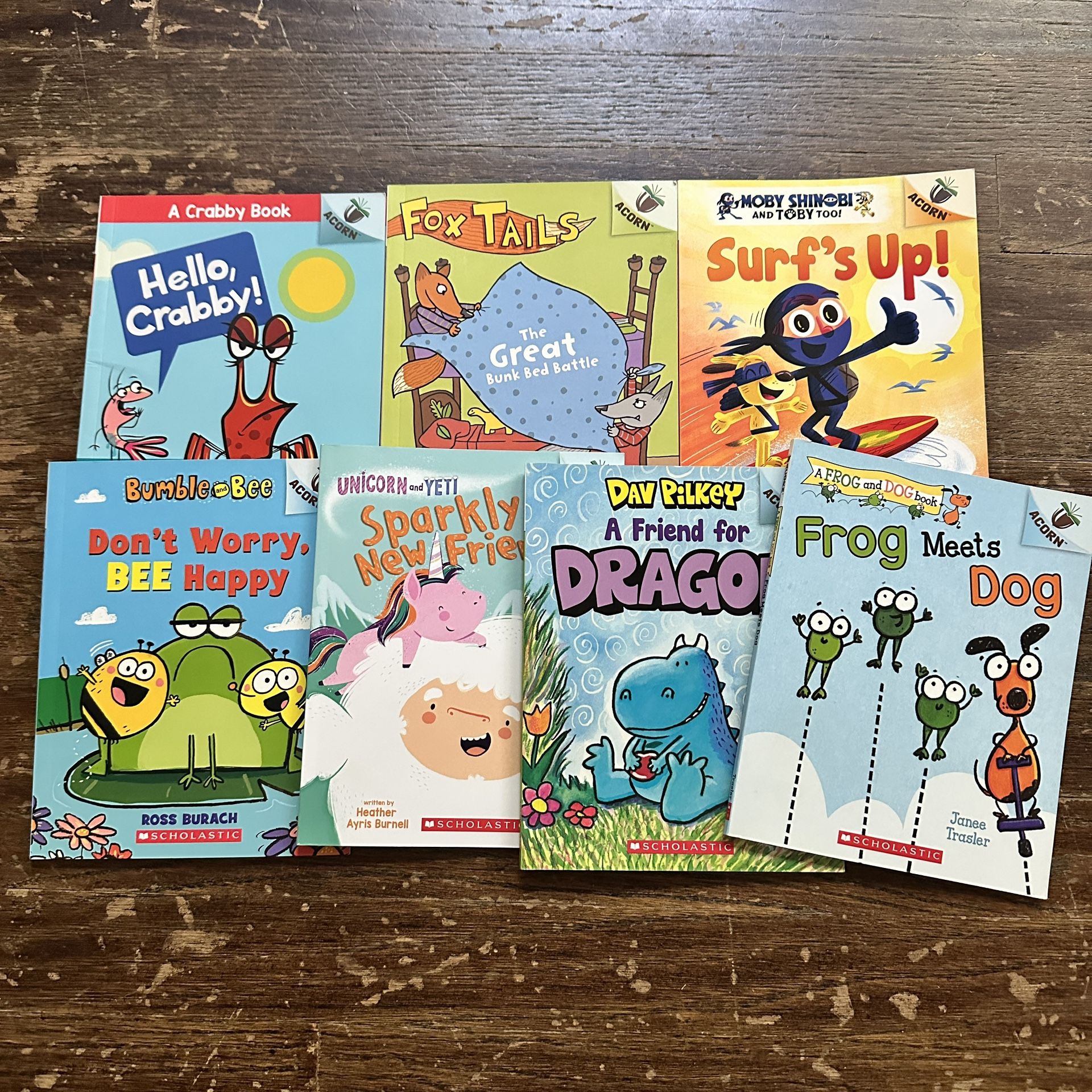Acorn Books Scholastic 7 Book Early Reader Set. Various authors. Excellent condition no wear at all. Great for ages 5-10