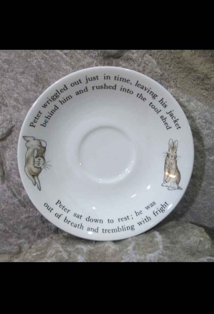 Vintage from the 1980s This is a vintage saucer from Wedgwood of Etruria. Beatrix Potter Peter Rabbit pattern. No tea cup but maybe you need the matching saucer. Measures about 5 3/4" in diameter. Excellent condition.
