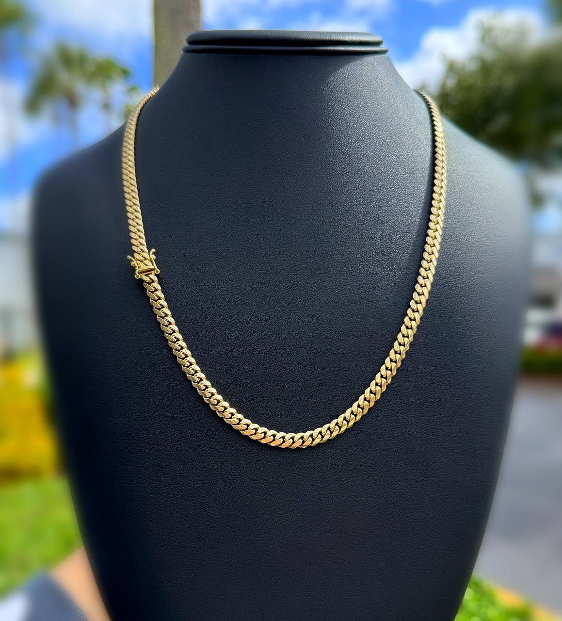 This gorgeous chain is made of 10k solid yellow gold with box lock. Style of chain: Miami Cuban. Size: 24.25 inches length and 5.00mm width. Total weight: 45.2grams β¨. Condition: brand new. Beautiful and stylish. Popular design. The best choice for you! Perfect gift! β€οΈππ We buy Rolex and Audemars, patek . Do layaway in VIP PAWN Coral Springs π₯ππΈ