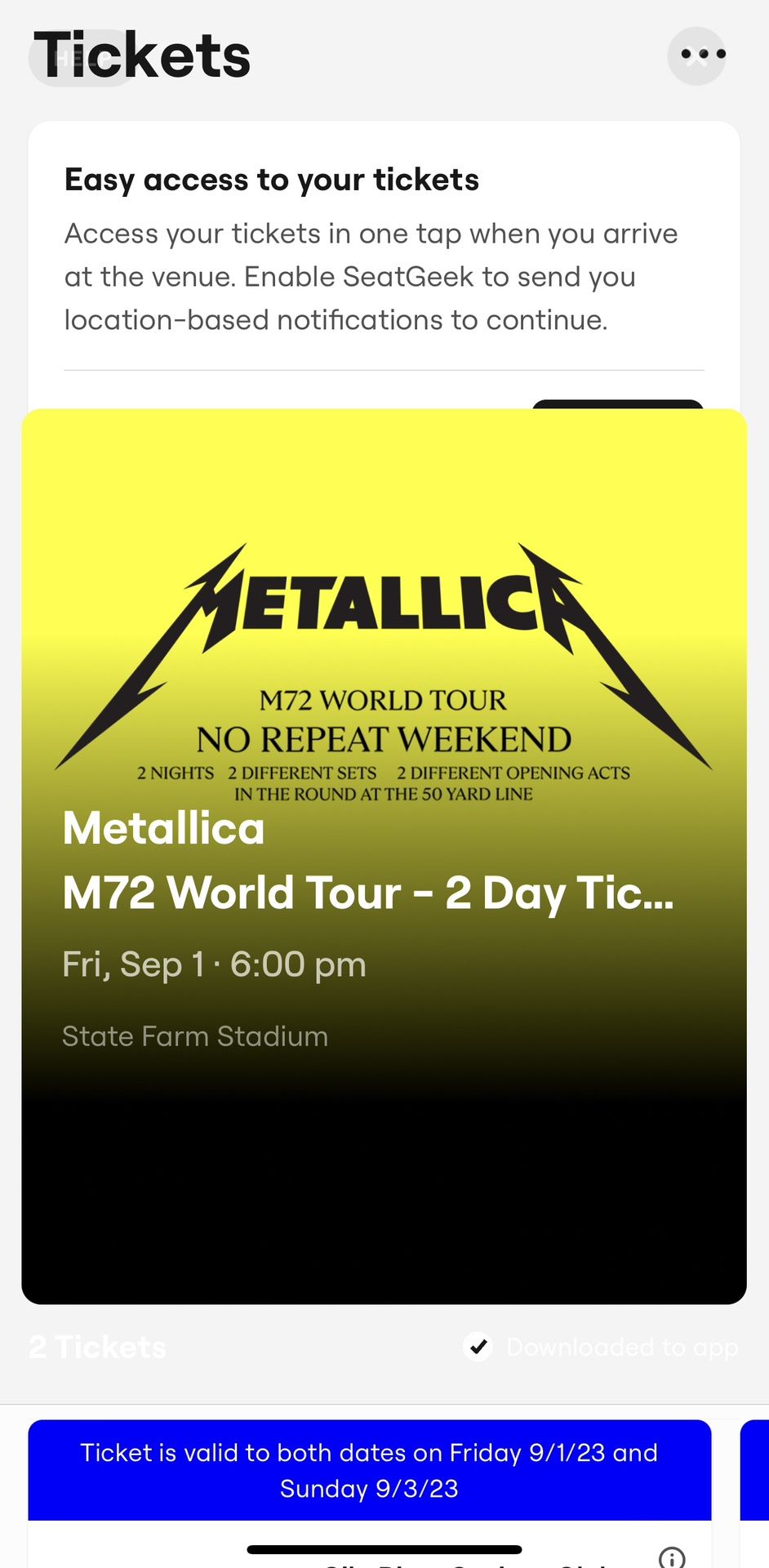 $200 each ticket 2 tickets for each night Section 222 row 10 Better deal than $200 for upper level seats If u see this, they are still available. If u msg, let’s make the deal
