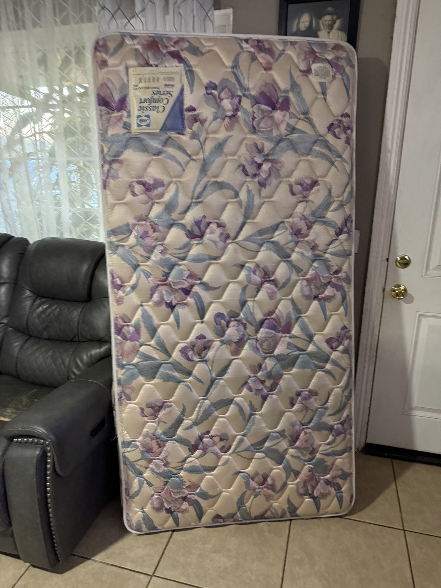 Like new firm twin size mattress classic comfort brand must pick up in Escondido I did want to sell it, but I need the space free to anyone who picks it up first in boxing for address