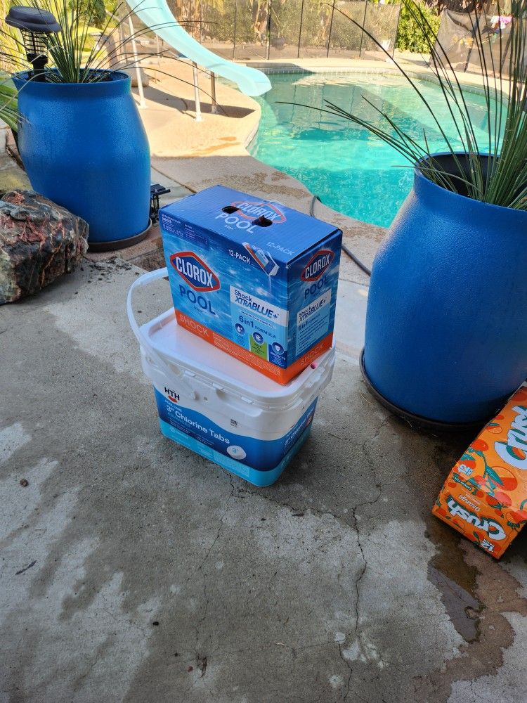 New Unopened 25lb tablet bucket Shock with 12 1lb packs Asking 120 for both
