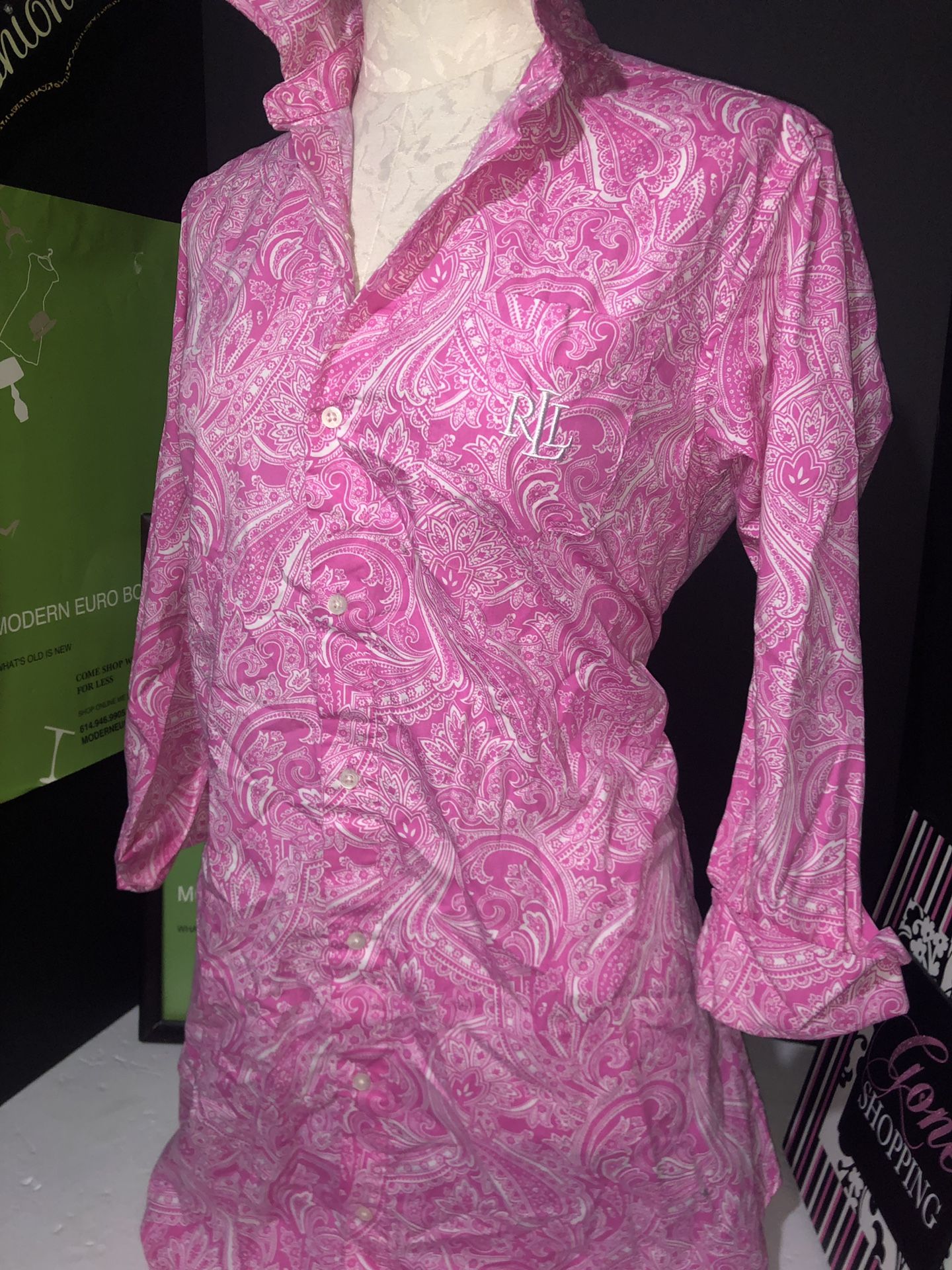Ralph Lauren paisley pink cotton dress size S very nice