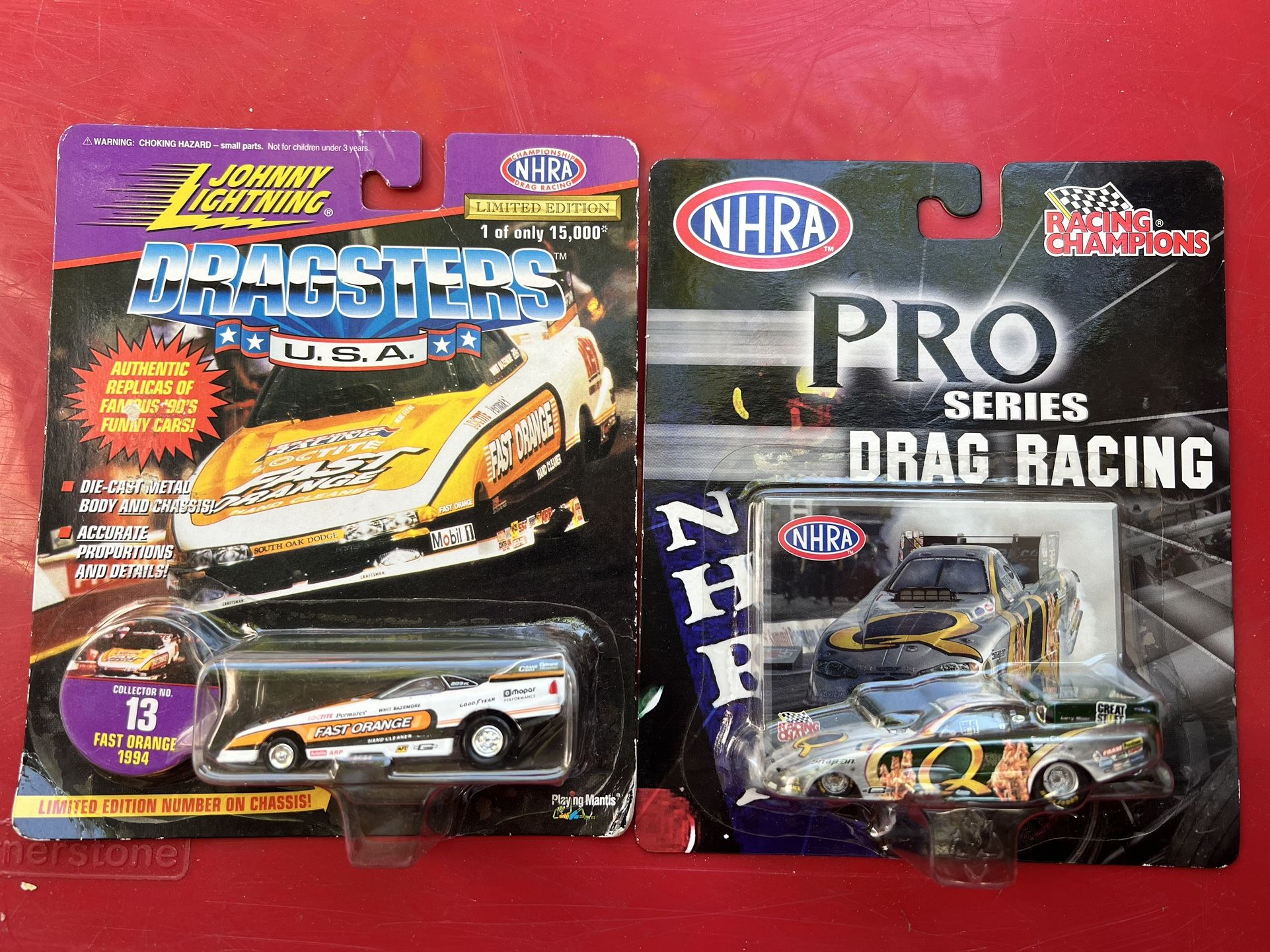 Two Funny Cars 1/64 Scale Tony Pedrejón Quaker And Whit Bazemore Fast Orange Cash pick up only