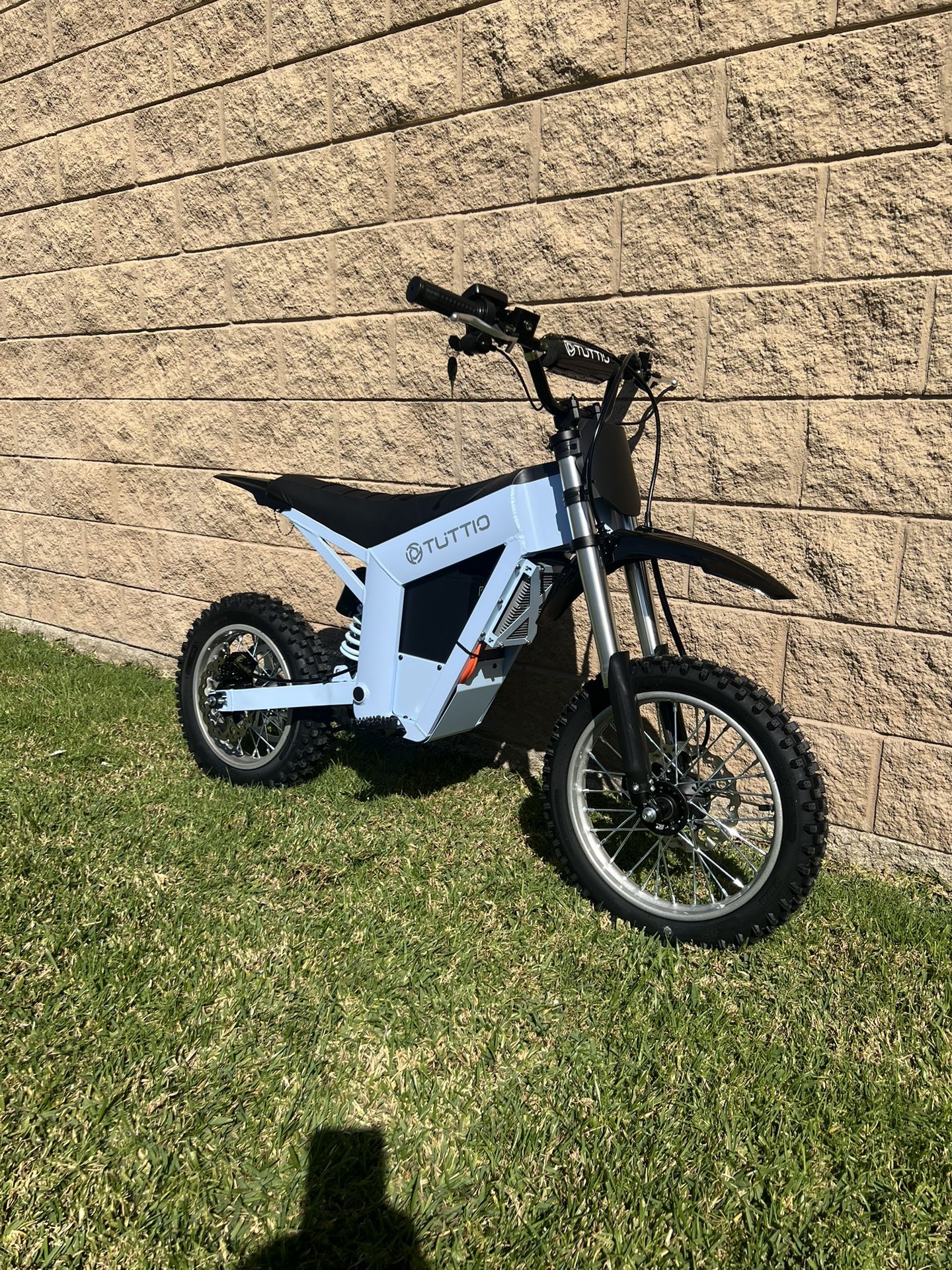 Tuttio Soleil 01 Electric Dirt Bike 3000W/48V Glacier Blue Brand New **** Financing Available **** Fits Person 3’9” - 6’1” Performance Top Speed: 37Mph (60Km/h) Range: 45Miles Motor: 48V 3000W Peak Brushless Motor 200N.m Battery: 48V 21Ah Lithium-ion Battery Front Shocks Diameter: 40MM and 6 inch travel. Suspension Type: Hydraulic Suspension Brakes: Hydraulic Heavy Duty Brake Front Tire: 14"x2.5" Junkai Tire Rear Tire: 12"x3.0" Junkai Tire Electronics Charger: 48V 2.5A Charger Charger Voltage: 100-220V, 50-60Hz Charging Time: 0%-100% 7.0-8.0 Hours Display: Black & White Display Controller: 48V 70A Ride Mode: Three-speed Zero Start Drivetrain: Chain Drive Components Frame: Aluminium Alloy Chain: 116 links (420 chain) Heavy Duty Chain Max Climbing: 30 degrees Front Shocks Diameter: 40MM and 6 inch travel. Front Suspension: Hydraulic Suspension Rear Suspension: Nitrogen Shock Absorber Waterproof: IPX6 Geometry Suitable Height: 3.9ft (120cm)~6.1ft(185cm) Seat Height: 29.5" (75cm) Bike Height: 37"(95cm) Wheelbase: 40.9"(104cm) Ground Clearance: 9.8"(24.89cm) Handlebar Width: 28.34"(72cm) Bike Weight: 105lbs (48kg) Maximum Load: 265lbs (120kg) Overall Size: 59" * 28.3" * 37" (150 x 72 x 95cm) Package Size: 53.9" * 11.8" * 39.7" (137 x 30 x 101cm) electric scooters, dirt bikes, Tuttio Surron, Emojo, Hiboy, RedCat, Arrma, Atlis, sigma, Rawr