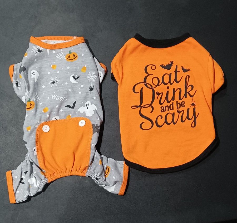 1 simple Orange t-shirt (Eat Drink and be Scary) and one Halloween pattern Pijama
