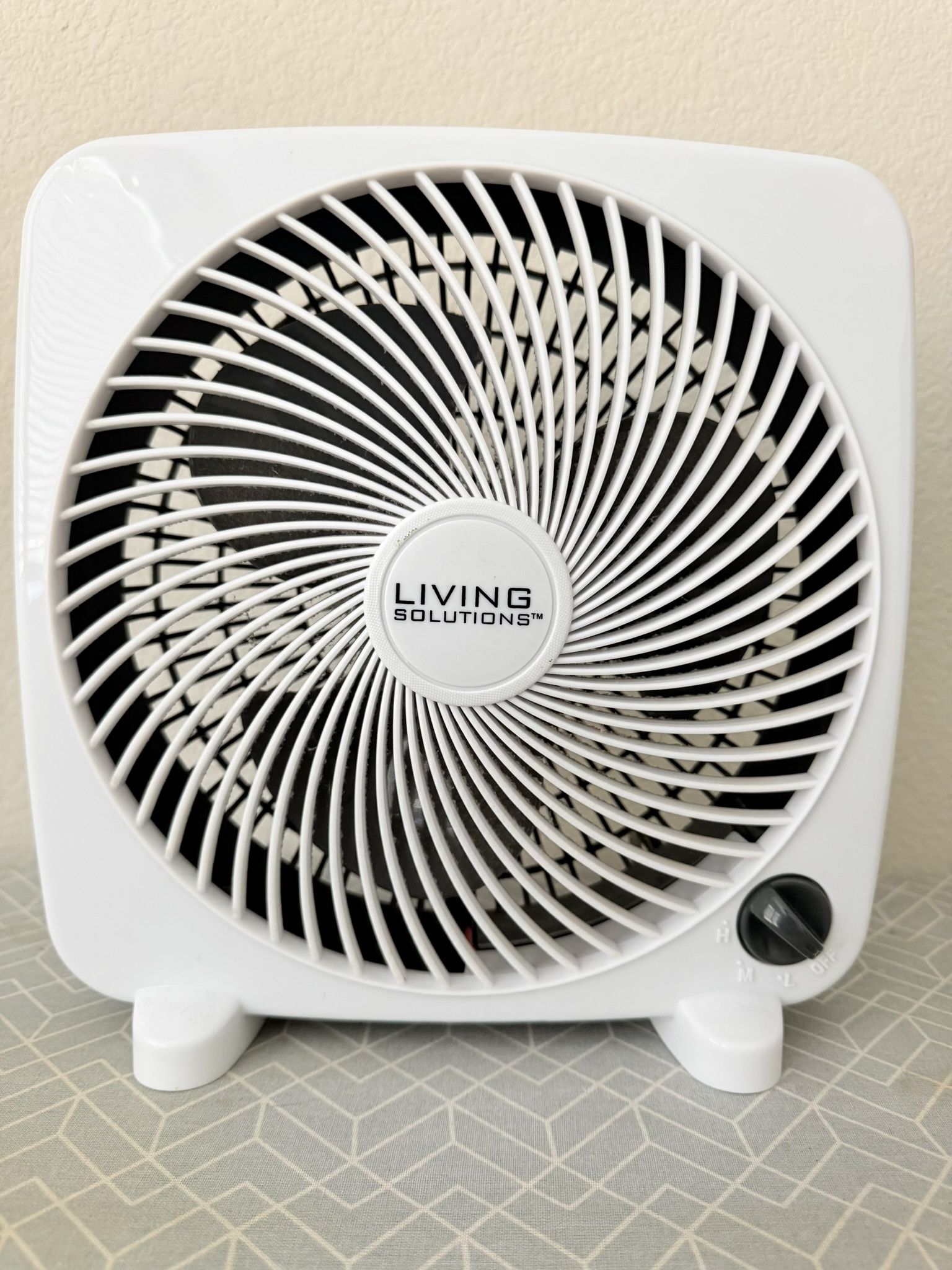 Compact and powerful desk/floor fan. Features 3 speed settings (High, Medium, Low). Slim profile makes it easy to fit on a windowsill or nightstand. Clean and ready for a new home.