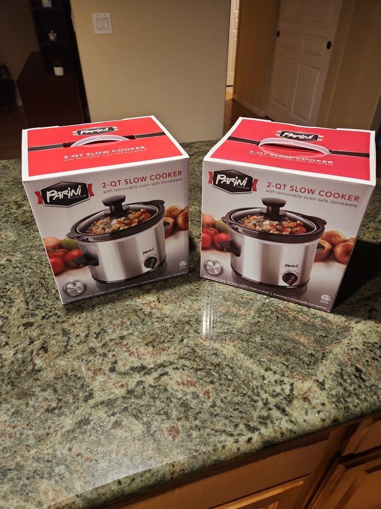 We have 2 brand new Parini 2 qt slow cookers $25 each or both for $40