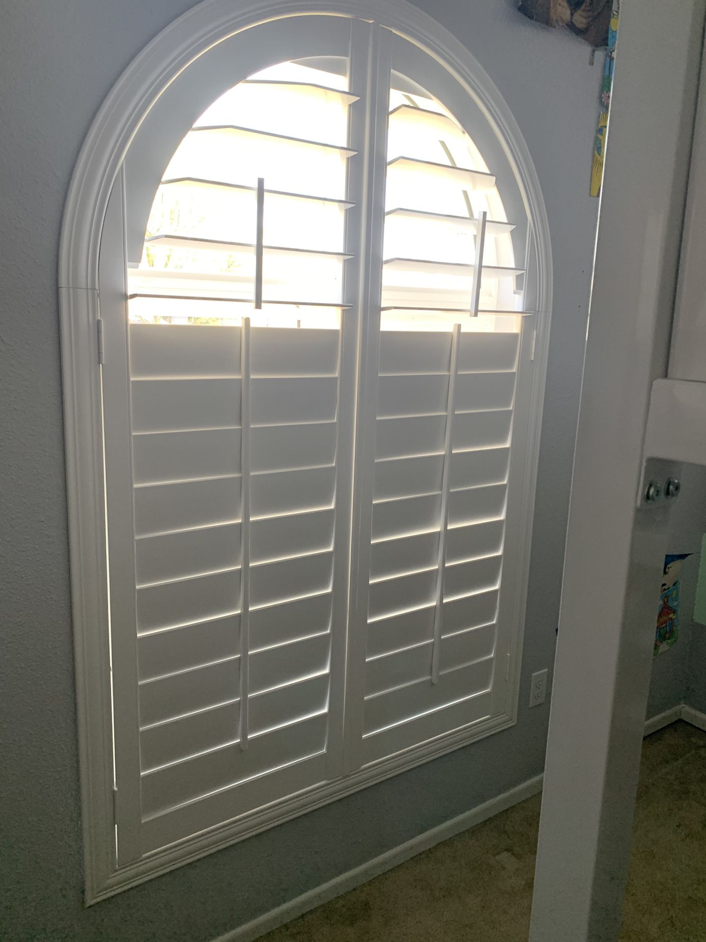 Banded shade white cordless 47.625x48.125 Banded shade white cordless 45x46.125 Cellular shade Brown 23x59 (no remote) Rods silver nickel for drapes with rings or traverse (we have the brackets) 48” and we have 6 of those. Track panel for sliding door (no solar screen) for 3 - 73” Track panel for sliding door (no solar screen) for 3 panels and 4 panels Woven Shade blue 42x39 Two speciality (arched windows) wood shutters 46x69 Cellular shade for siding door or big window grey TDBU 57x70 Cellular shades brown light filtering on a sliding door meet in the middle 146x99 (this is a shade from Feb 25- this year- and it does have a little tear on the handle ) Make me an offer. We can deliver and/or install For a cost