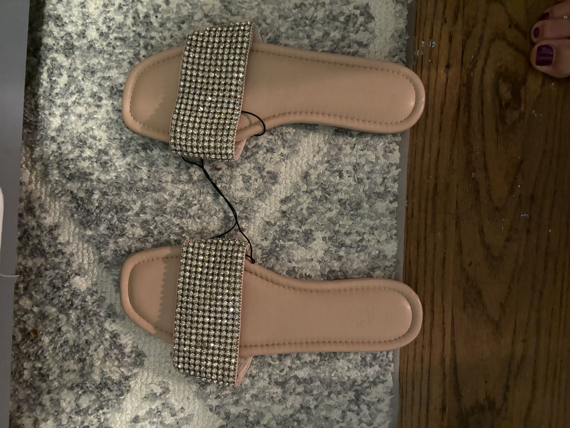 Brand new womens silver rhinestone sandsls with pink soles. In a size 9