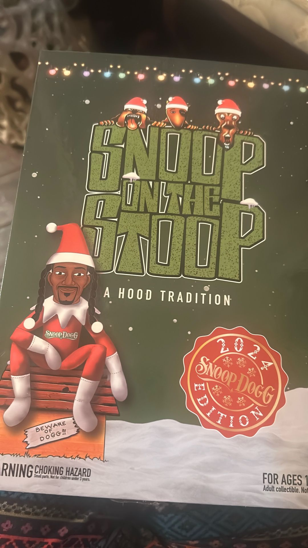 Snoop on the stoop is Snoop Dogg‘s Christmas version of elf on the shelf very cute for the collector of Snoop Dogg and lovers of rock music. Here you go get a snoop on the stoop this Christmas to put on your shelf or in your bathroom or wherever it fits holdingyour marijuana cigarettes or whatever you wanna do with it great Christmas gift along with a bag of weed make anybody happy this Christmas season we did not included