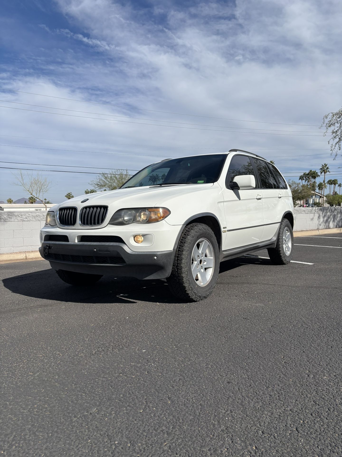 I am selling my 2006 BMW X5 3.0i. The car is AWD and automatic. Everything works as it should. Has about 157k on it and going up, as it is one of my dailies. Runs and drives very well. No dash lights. The engine is very healthy and the transmission shifts smooth. AC is ice cold. The exterior is a solid 8/10 with no major dents. The interior is 8/10 with no tears or rips. It’s currently sitting on bigger all-terrain tires, with a full size matching spare in the hatch. There are OEM roof racks shown in the picture of the trunk. They are now on the roof. The only con I can think of would be the power steering fluid has a leak, which I top off here and there. Asking $4,250 OBO. Cash only.