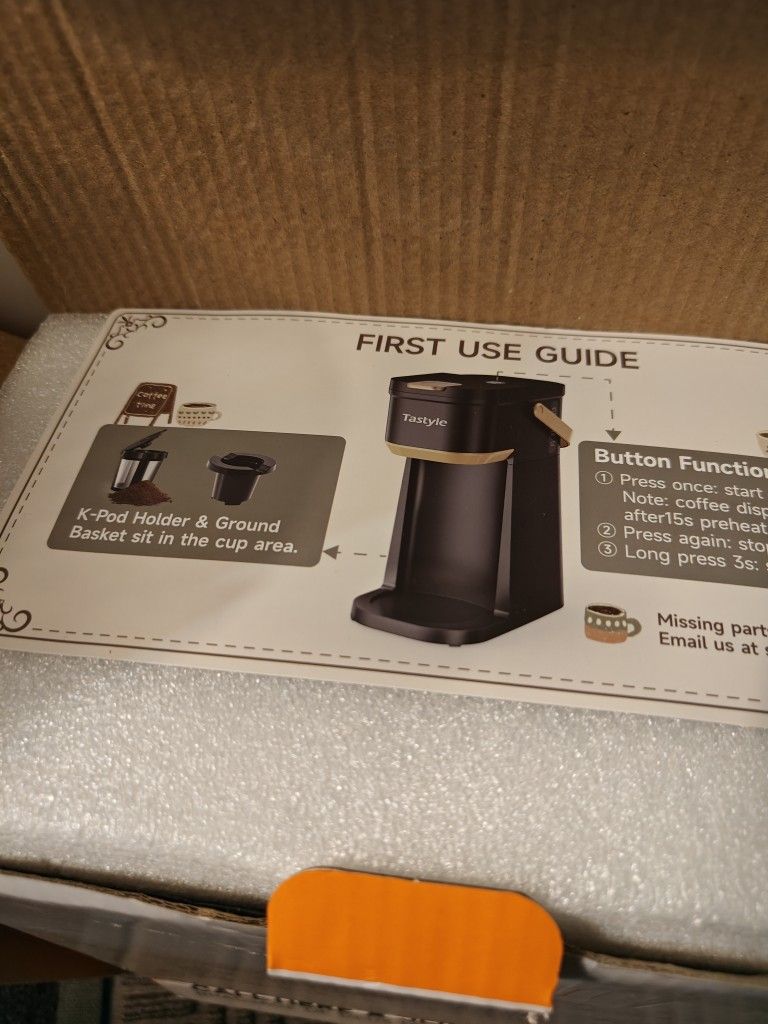 Single Serve One Cup Coffee Maker, for K Cups and Grounds, Mini Coffee Maker with Portable Handle, 6 to 12 Oz Brew Size, for Travel, Camping, Office, RV and Dorm, 120V, Black and Gold