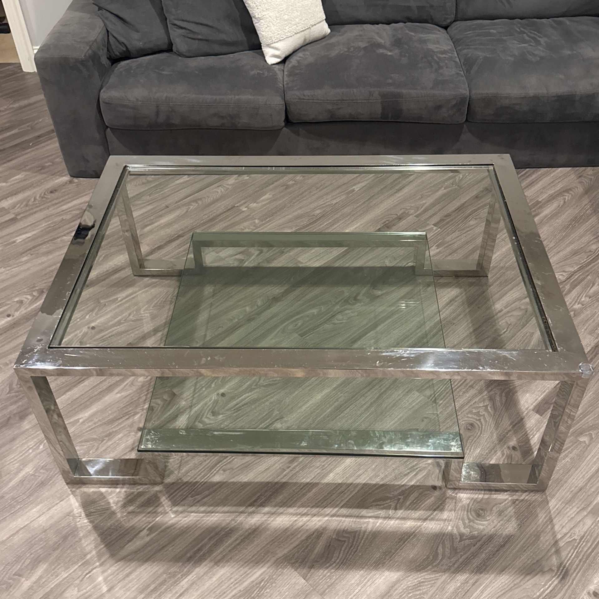 Glass and chrome coffee table purchased from Z gallery 50 inches X 36in Glass can be removed for transport