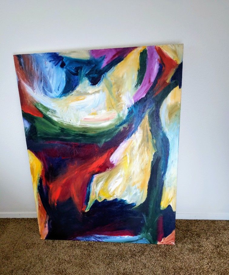 I've had this painting for a bit and it unfortunately doesn't fit my new space. It's a unique colorful piece that makes a great accent for a living room or bedroom. It measures 28x38".