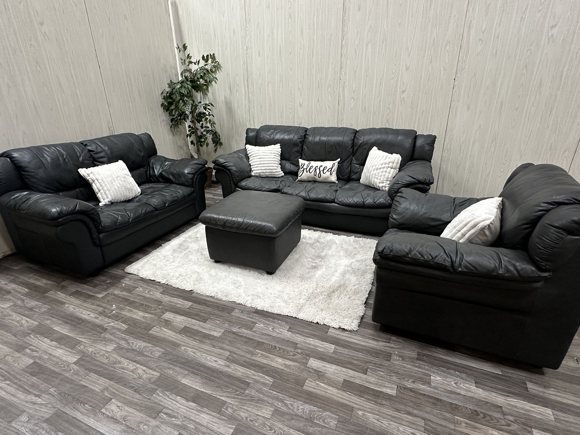 Gray Leather Couch, Loveseat, Chair & Ottoman - Delivery Available