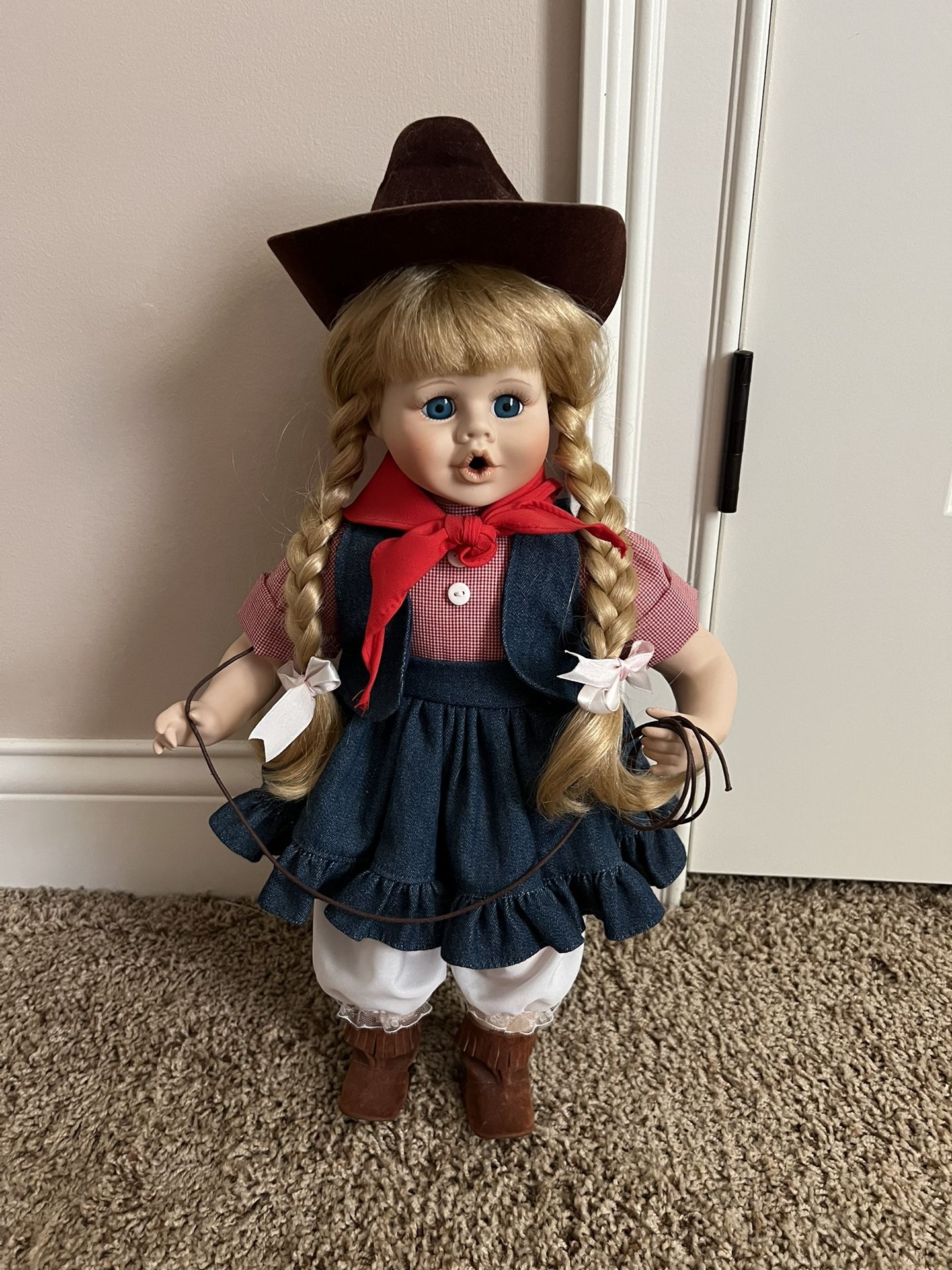 Vintage Porcelain Cowgirl Doll 18 Inch