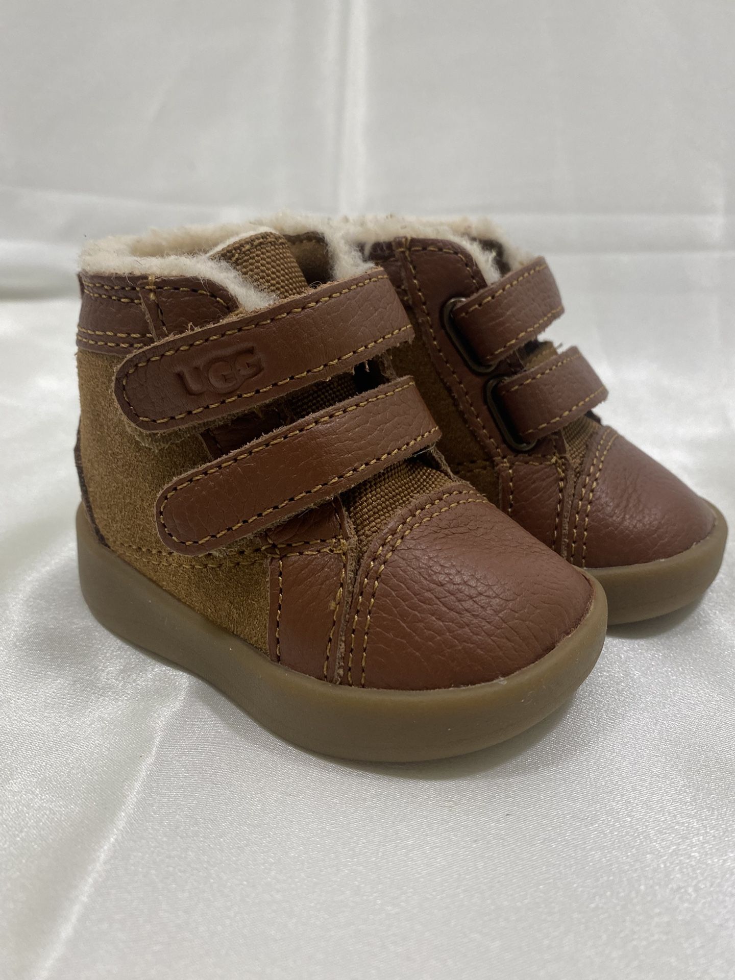 Cutest little UGG boots ever! These are light brown leather UGG boots in toddler size 2, perfect for keeping little feet warm and stylish during the colder months. Made in Vietnam, these boots are designed with comfort and durability in mind. The classic UGG style and high-quality materials make them a practical and fashionable choice for young children.