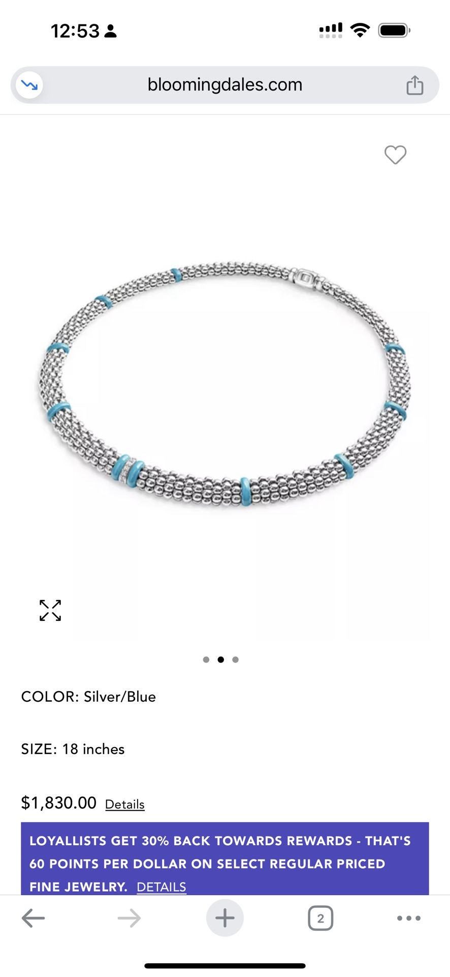 Product Features A rope of signature silver Caviar beads accented with diamonds and brilliant blue ceramic rondelles Diamonds: 0.11 ct. t.w. Ceramic Sterling silver Box clasp closure with logo crest Photo may have been enlarged and/or enhanced Some silver jewelry may be surface-coated with rhodium to enhance metal color and shine; it may wear off over time requiring replating. Imported Diamond Guide: The 4Cs of Diamonds