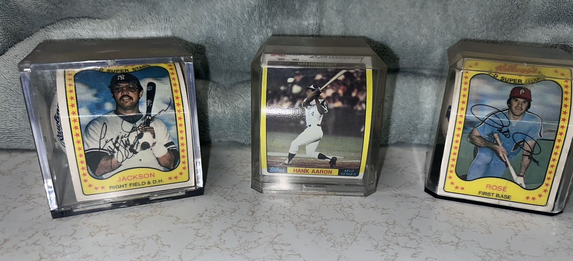 I have these signed baseballs in case with baseball card in them. Reggie, Jackson, Hank, Aaron, and Pete Rose.