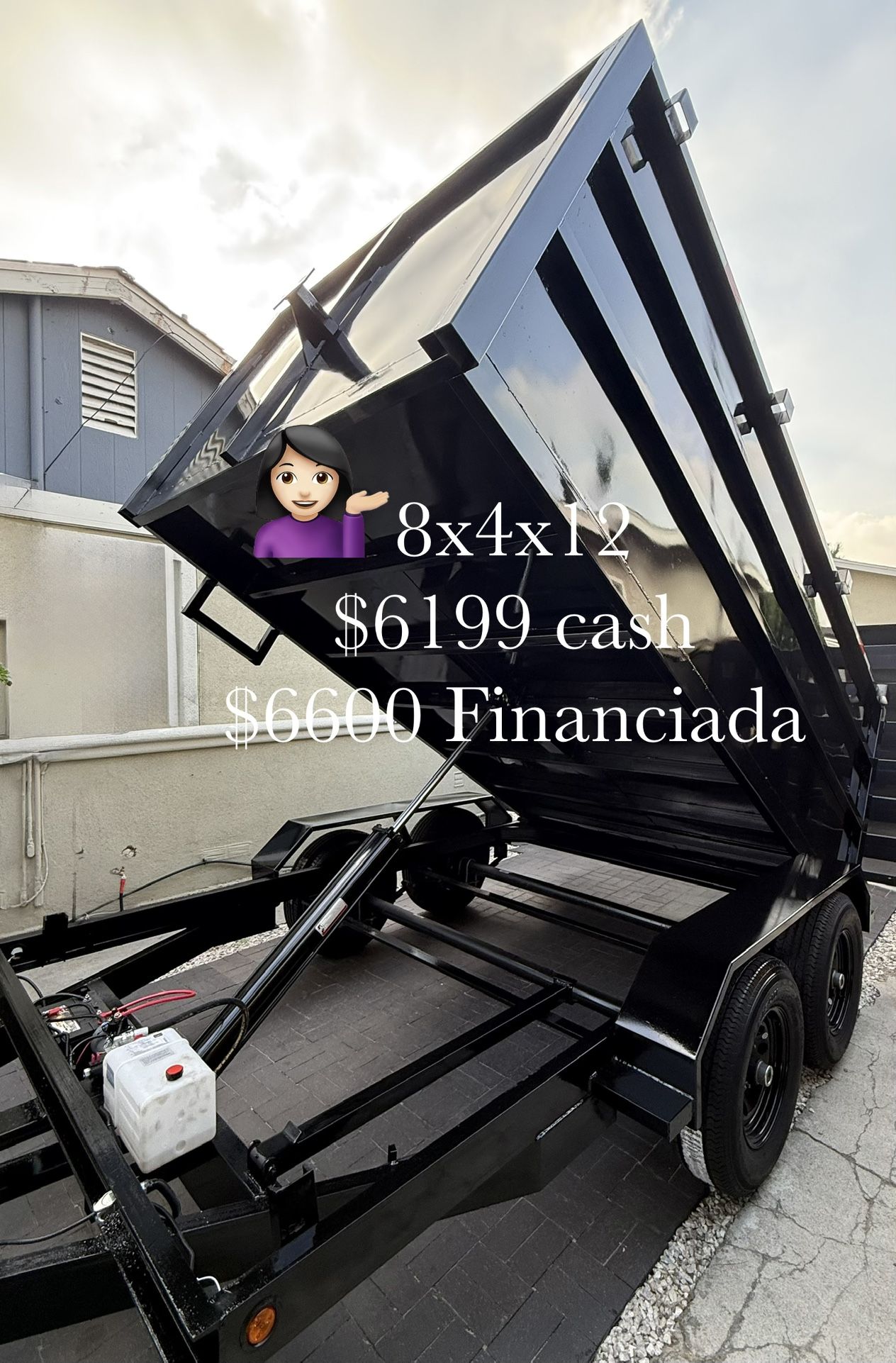 🤩Check out this new smooth walls dump trailer 2026 that came out loaded with built in ladder!🪜 8x4x12 /8ft wide, 4ft tall,12 ft long ✔️2 axels de 6000lbs cada uno (12,000 rams) ✔️6 lugs/6 birlos ✔️4.5 tons/9000 lbs max capacity ✔️Frenos eléctricos/Electric safety brakes ✔️Grey or Black color ⚫️🔘 ✔️Gauge 12 walls and floor ✔️Control remoto/Remote control ✔️LED Lights ✔️1 year warranty 🛑Other accessories available upon request/ otros accesorios disponibles a su pedido: Toolbox, tarp, spare tire 🛞 and ramps/caja para herramientas, lona, llanta de repuesto y rampas Sold separately/se venden por separado 👈🏻 I offer delivery/ofrezco entrega a domicilio 🚛 $6199 CASH PRICE OUT THE DOOR!!!💵💵💵 Ofrezco financiamiento, no ocupas crédito Hablo Español 👩🏻🦱😁