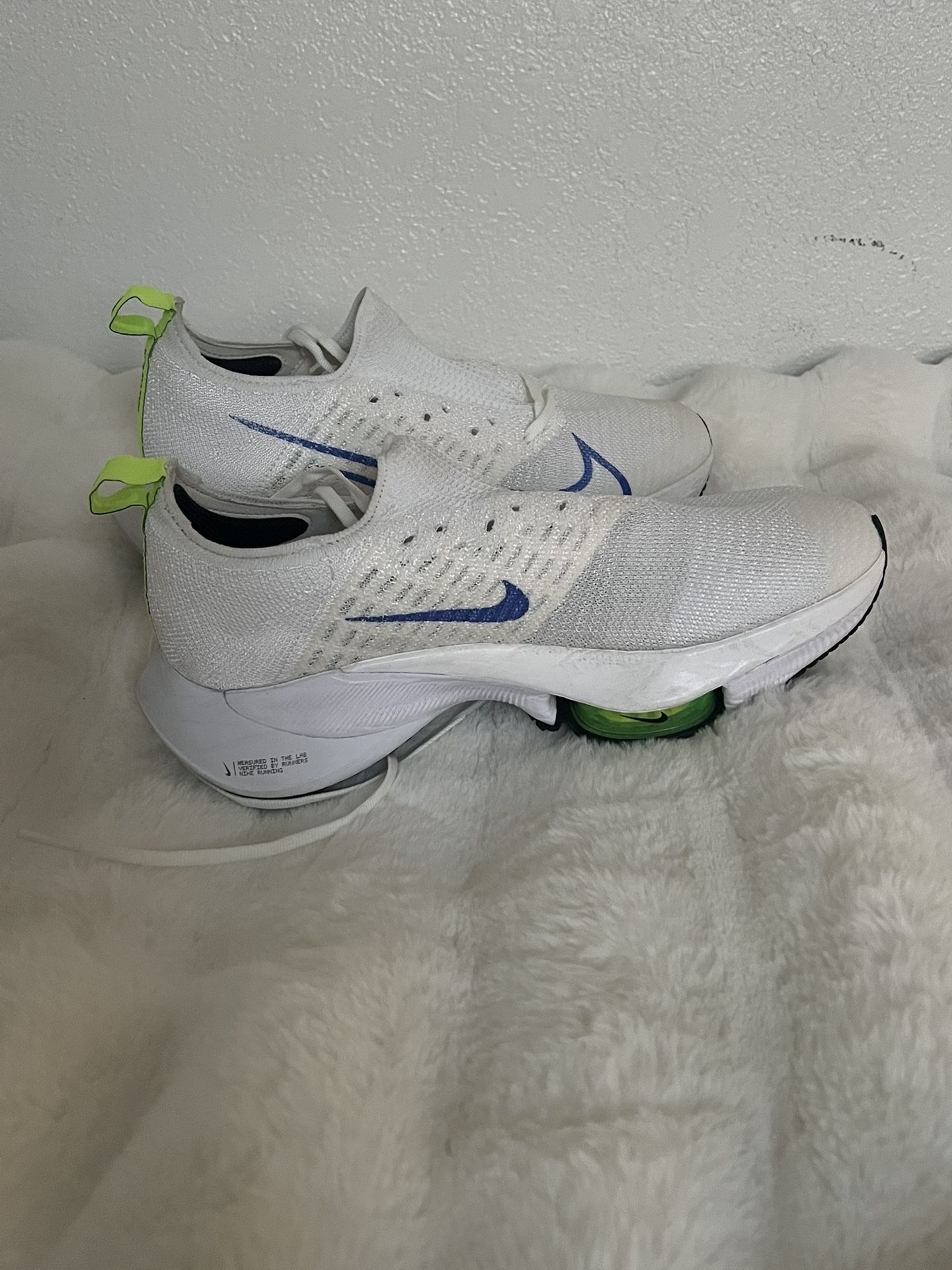 Nike Air Zoom Tempo Next Flyknit White Racer Blue Used Once 7.5 Men 9.5 Womans Size