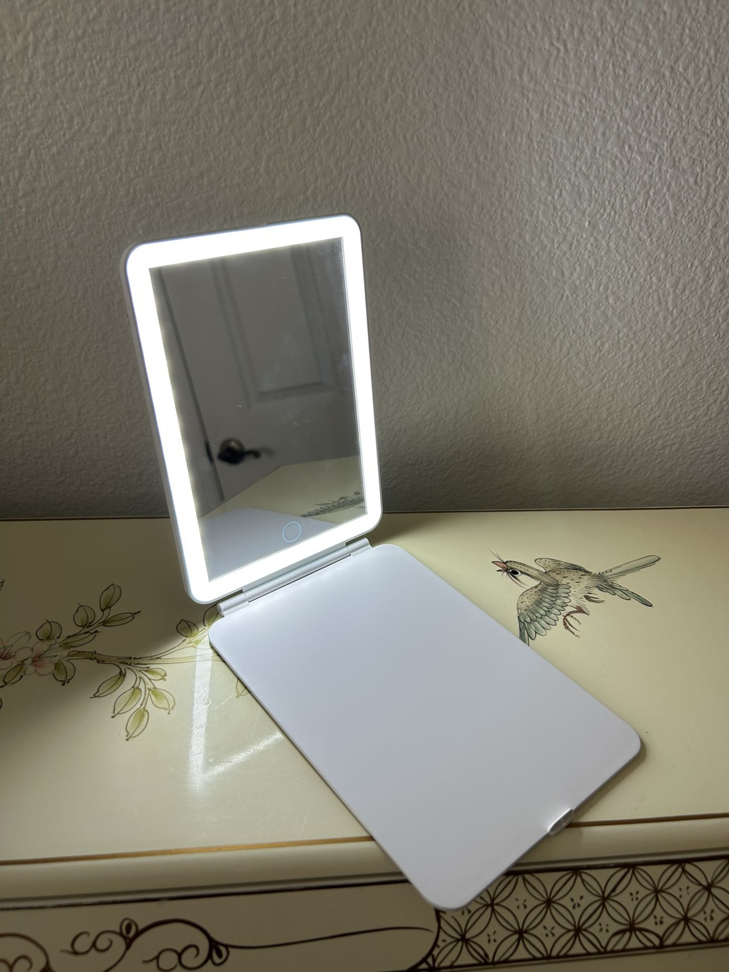 White Rechargeable Travel Makeup Vanity Mirror LED Lights Portable 3 Color Lighting Modes