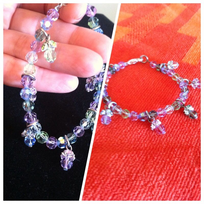 Lovely Crystal bracelet with nature design cones . Multi color exquisite style and sparkle . Used maybe 3 times , excellent condition . Seven pretty charms / cones dangle and silver clip .Please take a look at all the photos to see length& size .