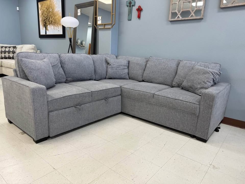 New In Boxes Grey Sectional Sofa With Pullout Bed