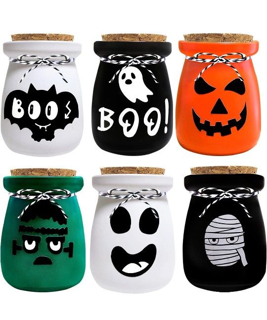 Halloween Decorations Indoor,6 Potion Bottles Halloween Decor,Halloween Mini Jars with Ghost Bat Pumpkin Mummy Boo Witch Haunted Lables for Haunting Party Supplies,3.38fl