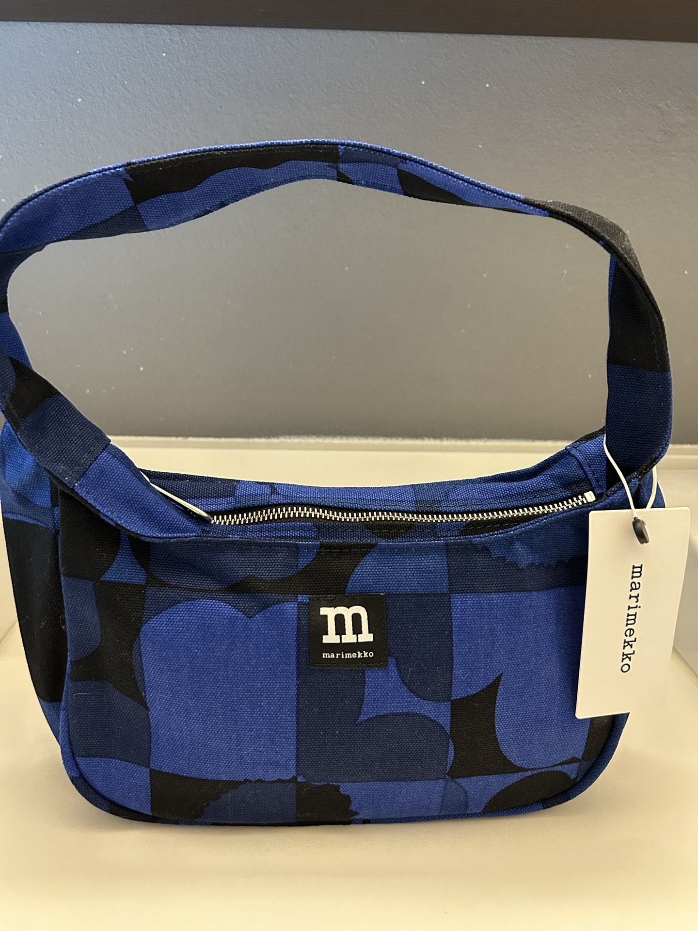 Perfect everyday Marimekko Finland zippered shoulder bag with zippered inside pocket. Measures: 10.5”W x 6”H x 3”D. Brand new with original tags. Bag in photo with model is from internet.