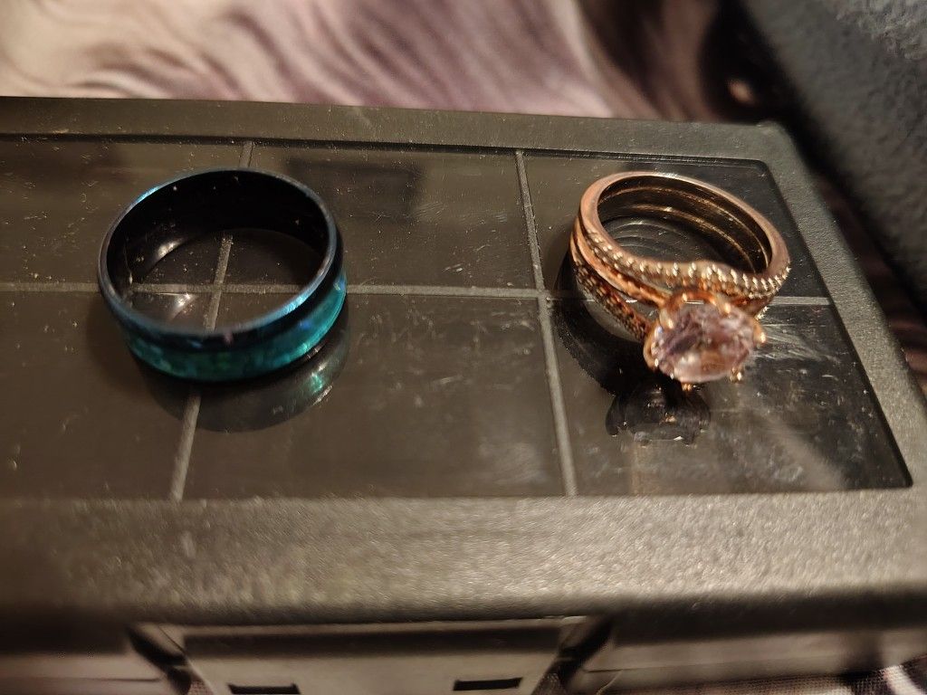 I have a man's ring size 8 to 9 I have a women's ring size 6 to 7 Like brand new Worn a few times and bought different ones Chambersburg pa Pick up They are both really nice rings and in perfect shape no damages or scratches on the ring