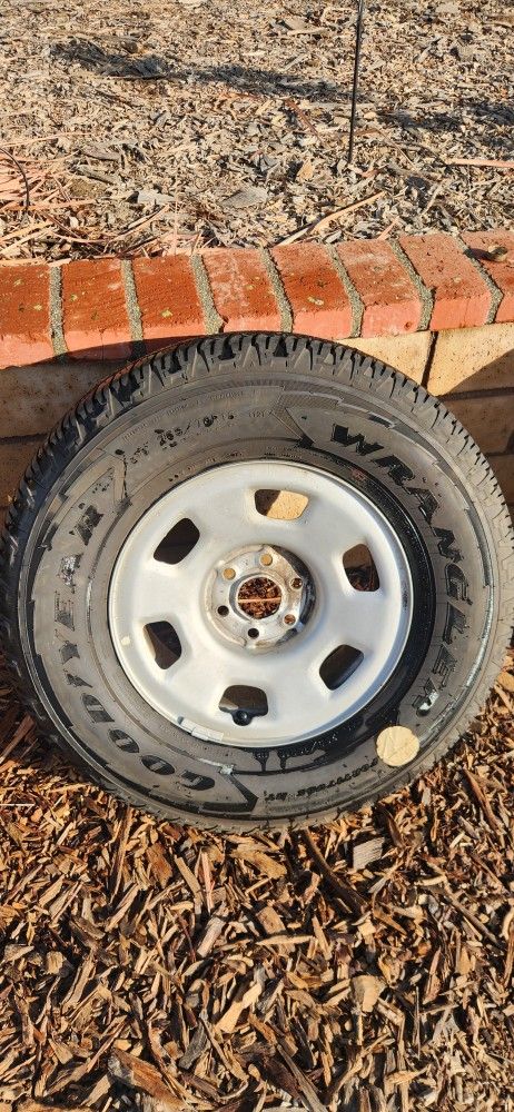 One new Goodyear Wrangler tire and rim off Jeep Wrangler Tire is new 265 70R16 In Riverside Will not respond to "STILL AVAILABLE?"