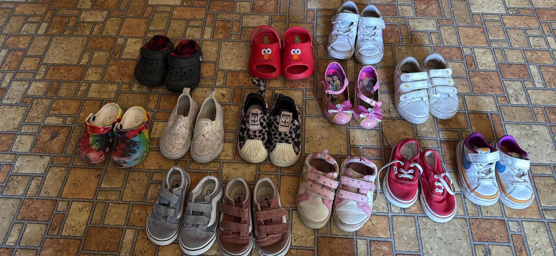 14 pairs of shoes including Nike, vans, crocs, etc… Bundle $60 all.