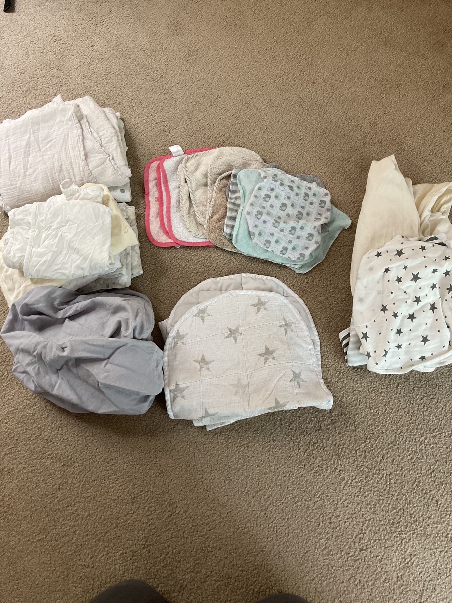 Small towels, muslins, swaddles, light blankets, changing pads, baby mattress sheets…
