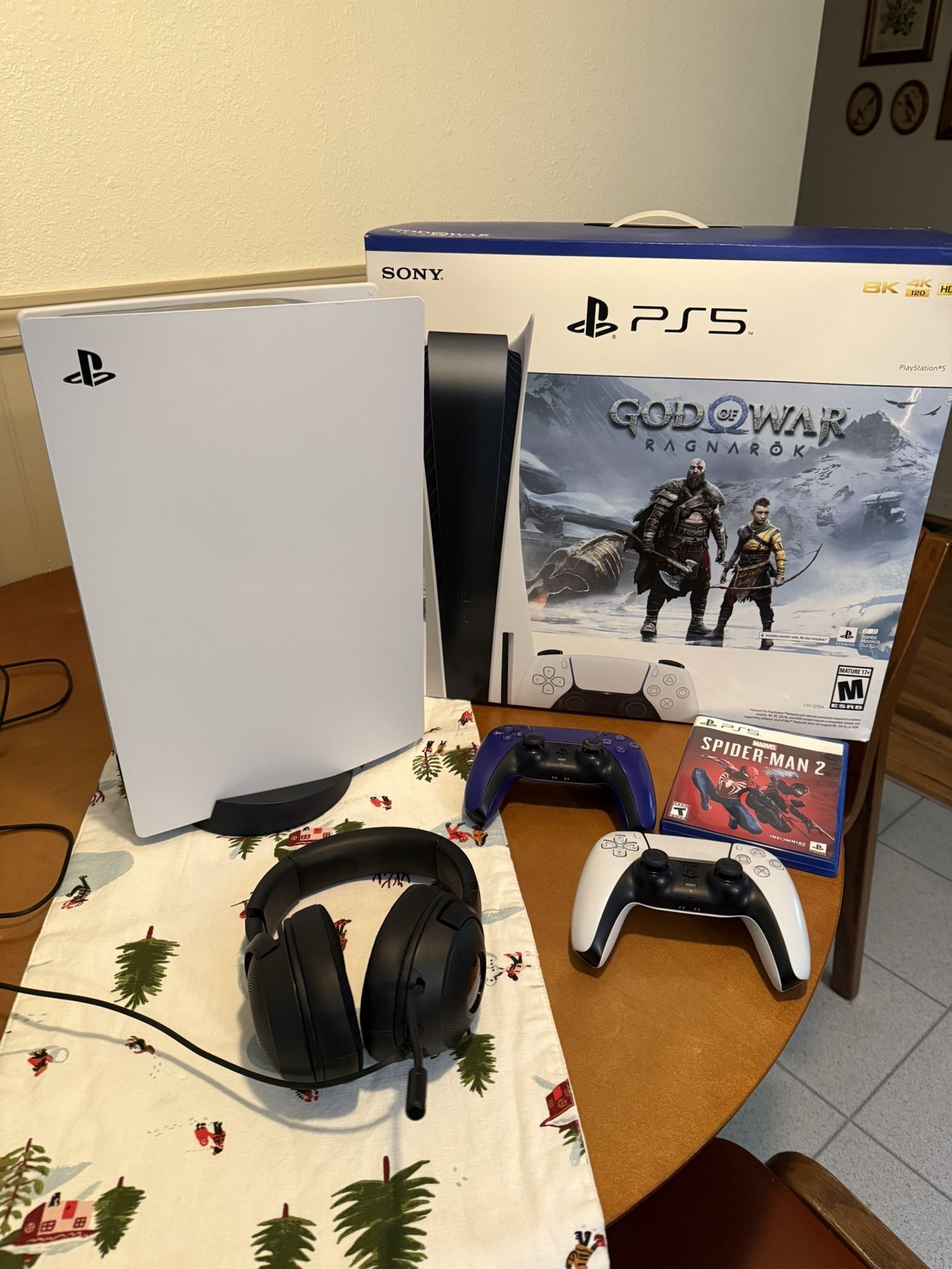 PlayStation 5 Disc Version 1 TB - Perfect Like New Condition (including Headset, Two PS5 Controllers, and a Stand)