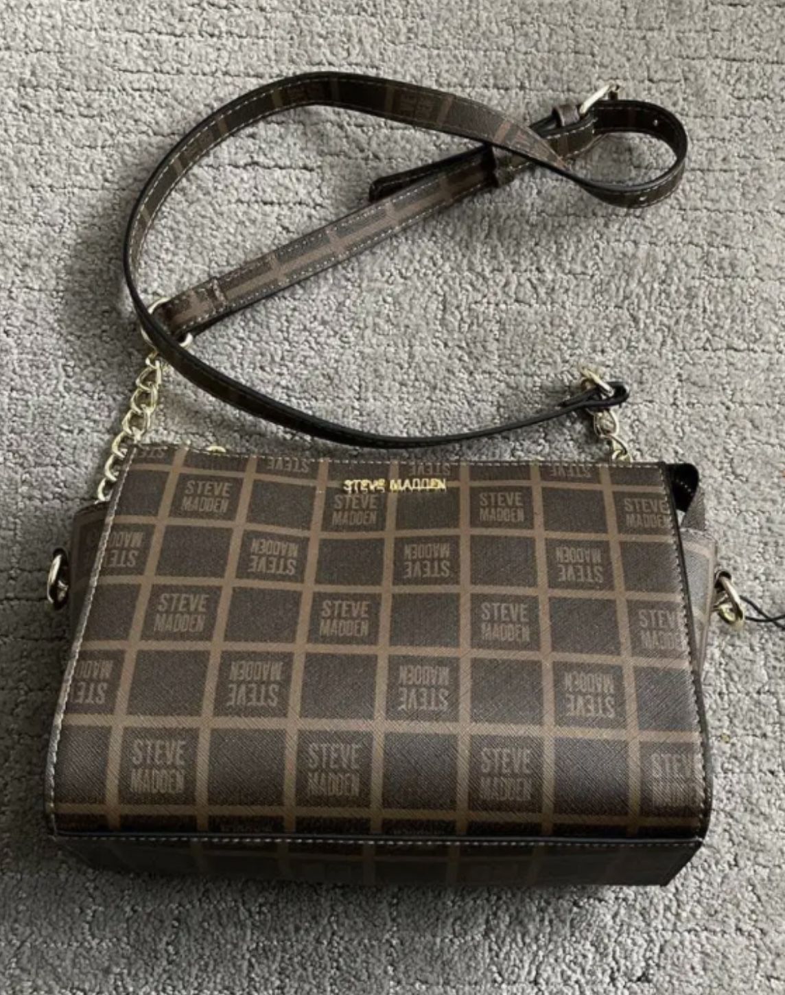 Steve Madden Blexies Handbag Fabric type 100% Faux Leather Care instructions Hand Wash Origin Imported Closure type Zipper About this item Bottom width 9 inches x depth 4 inches x height 7 inches Mid size trapezoid shaped satchel with adjustable buckle style crossbody strap Top zip closure and exterior slip pocket on back Lined interior with interior zip pocket and 2 slip pockets Flat bottom Retail $58.00 Selling other places for $44.00 Only asking $30.00