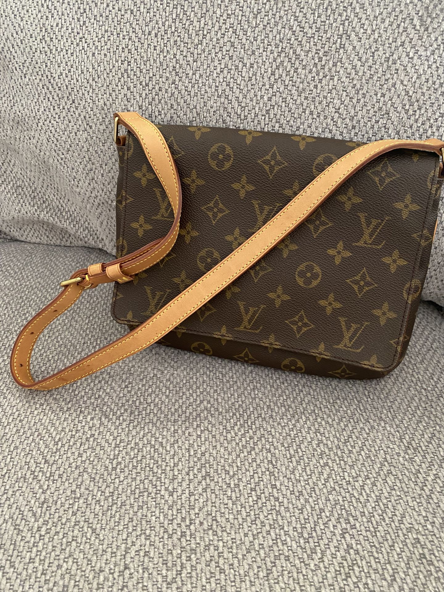 The Louis Vuitton Musette Tango Short Monogram Shoulder Bag is a stylish and classic accessory for women. Made of Monogram Canvas and Leather with a Coated finish, this medium-sized bag features a rectangular shape with a Flap closure and a Magnet lock. The brown exterior color and gold hardware accents add a touch of luxury, while the adjustable shoulder strap offers convenience for everyday use. Vintage with its Paris theme, this shoulder bag is perfect for casual occasions and inner pockets provide extra storage for essentials. Perfect for the fashion-forward woman who appreciates timeless elegance. Condition Rating:Excellent :Canvas is in great condition, leather parts have some watermarks and subtle scratches as you can see on the photos, no tear or significant wear, ( inside) : is clean ,the zipper works properly Size: WxHxD inch 10x8x3(approx) Shoulder/Handle(inch): 24.0-29.0(approx)55