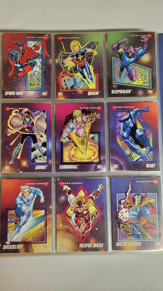 Marvel 1992 trading card set. Original from 1992 card set, missing card #168 and holograms H1, H3. Cards kept in sleeves and in good condition.