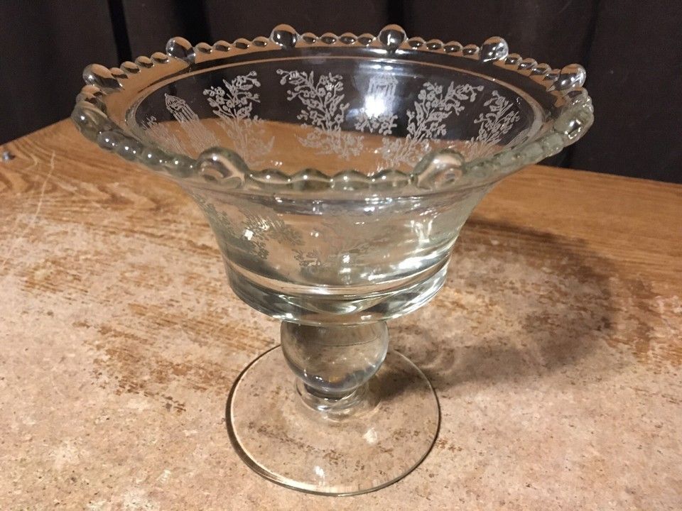 Depression Glass Paden City Gazebo Etched Footed Candy Dish 6.25"