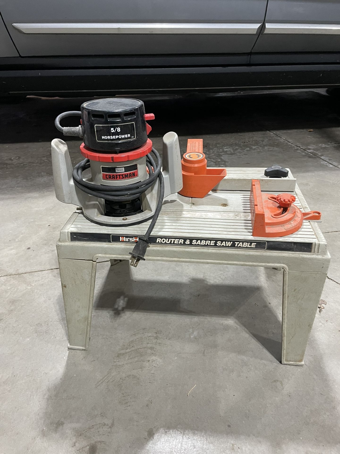 I’m selling an older router and router table. Still works as should. It is a sears craftsman 5/8 horsepower router with a Hirsh table with fence, miter gauge and guard arm. Video shows the router working. Asking $40 OBO. Cash or Venmo only.