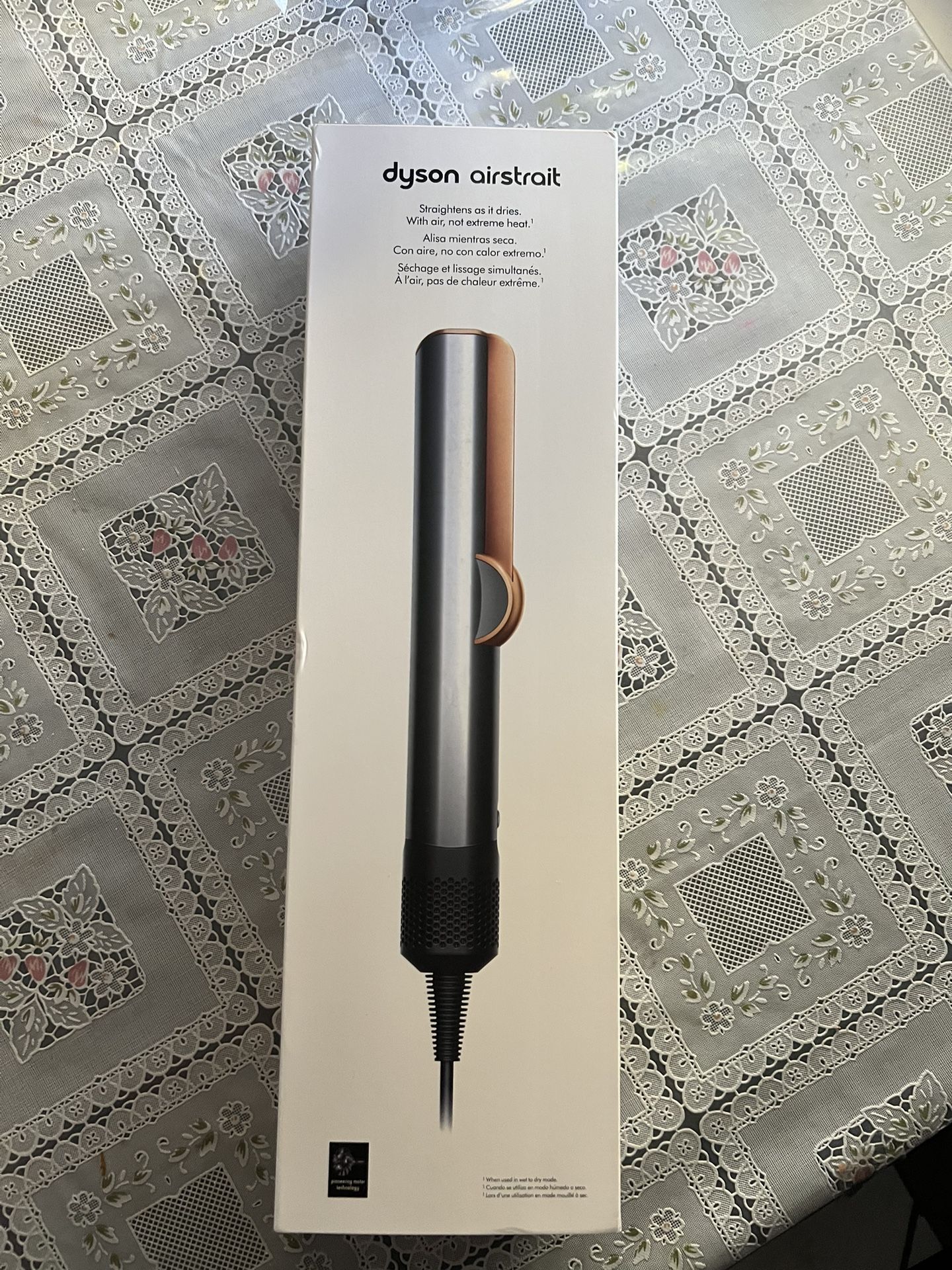 Brand new never opened Dyson Airstrait color is nickel/copper The Dyson Airstrait is a travel-size electric hair straightener in a stylish nickel/copper color. With a maximum temperature of 410°F and adjustable heat settings, it is suitable for all hair types. The ceramic heating plates ensure smooth and sleek results, while the auto shut-off feature adds safety and convenience. Backed by a 2-year manufacturer warranty, this Dyson model is perfect for women looking to achieve salon-quality results at home.